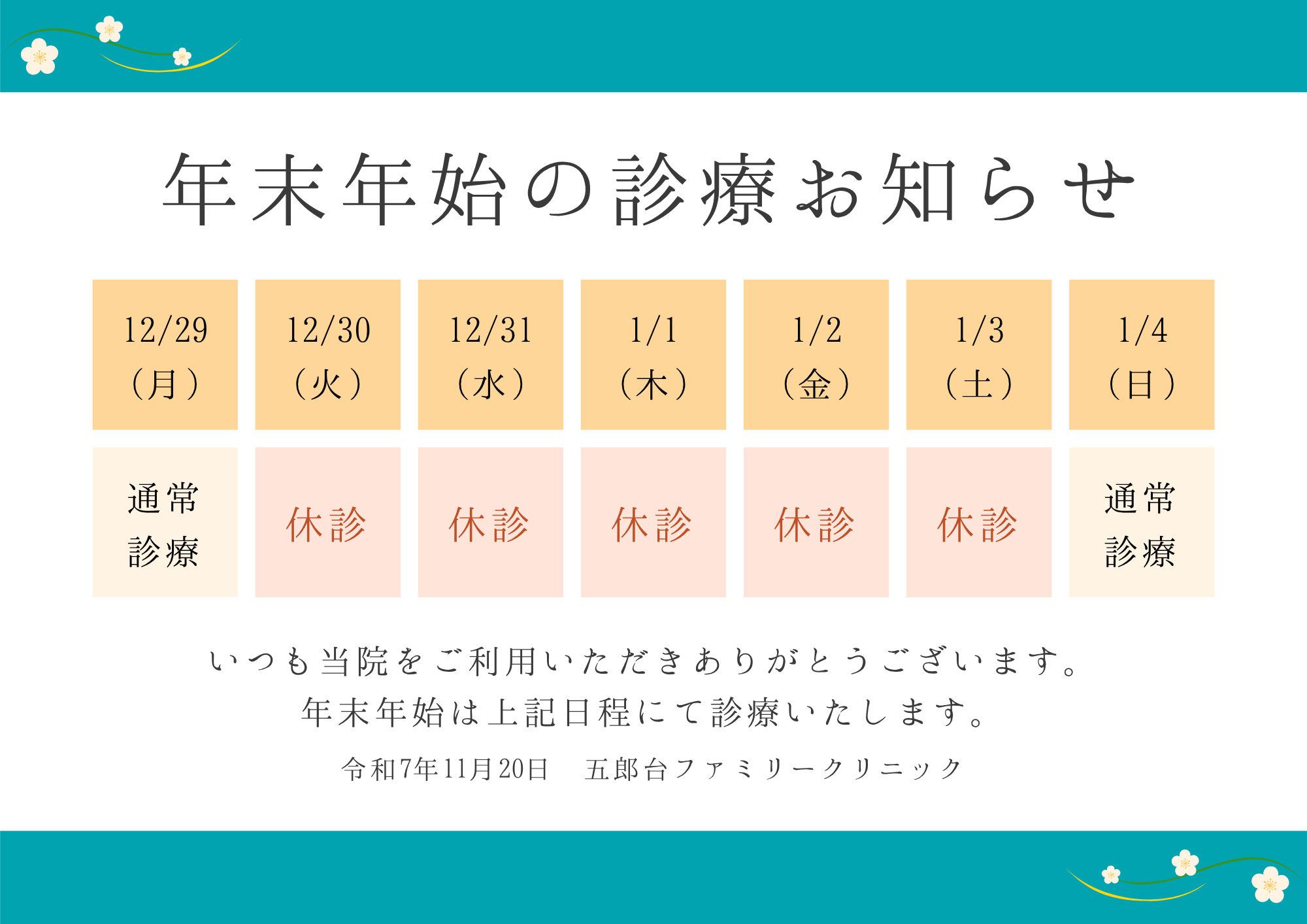 (2025/12/29〜2026/01/04)年末年始の診療について