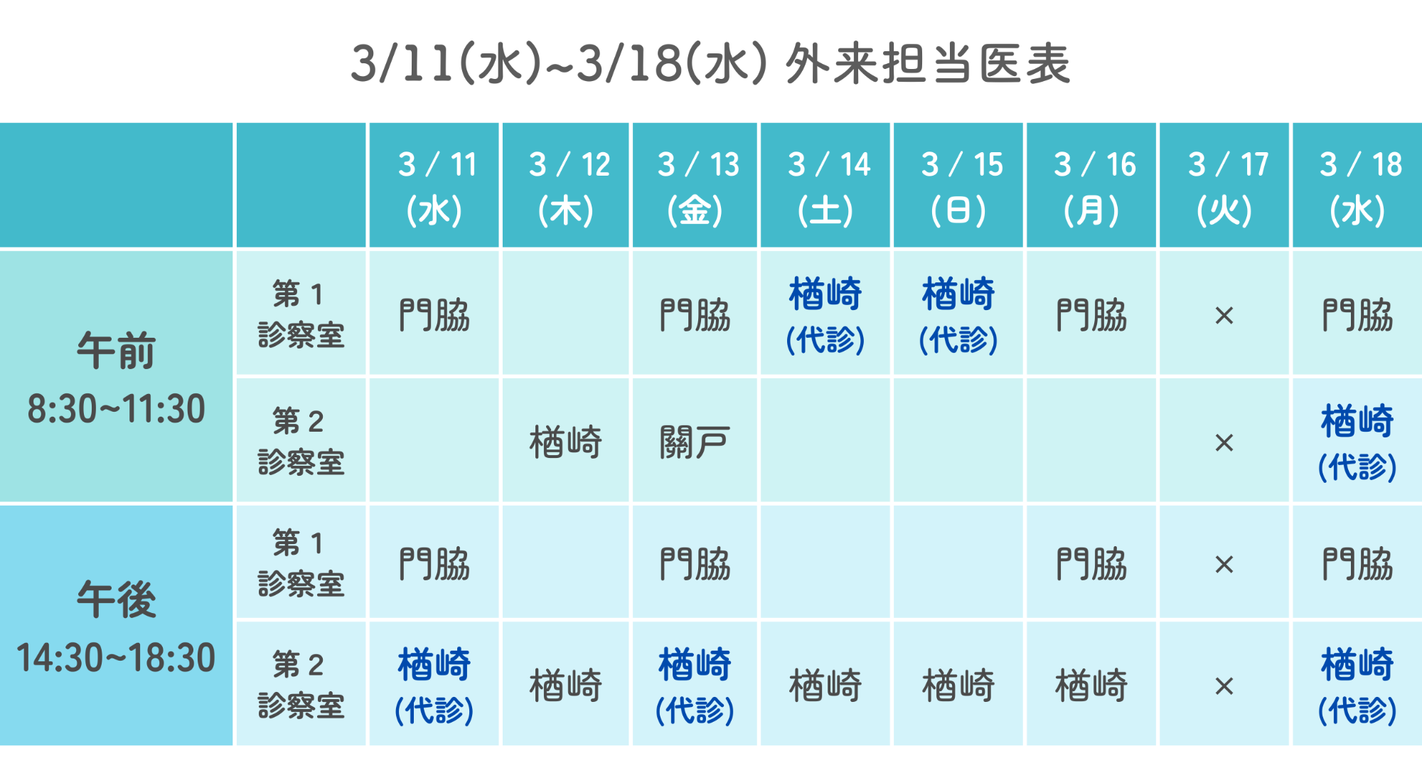 (2026/03/11〜2026/03/18)担当医変更のお知らせ